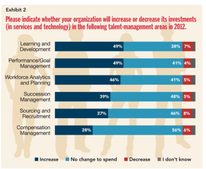 It also doesn’t surprise me that more organizations than not will be increasing their investments in Learning/Development, Performance/Goal Management and Workforce Analytics/Planning services and technology. That’s obvious.